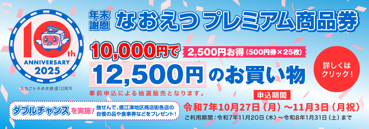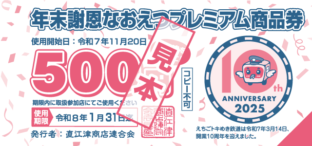 直江津地区商店街の年末プレミアム商品券参加店(PDF参照)でご利用ください!